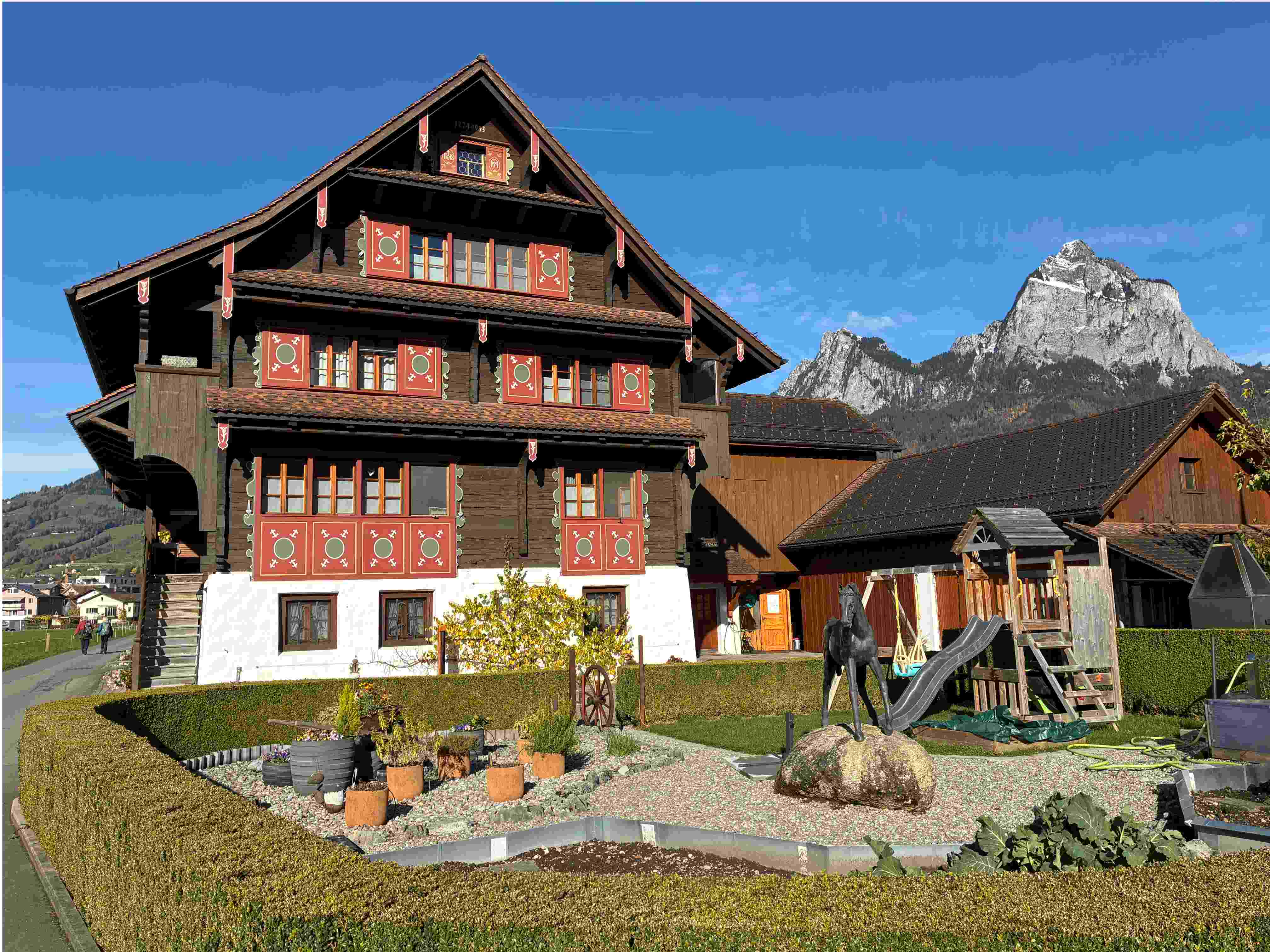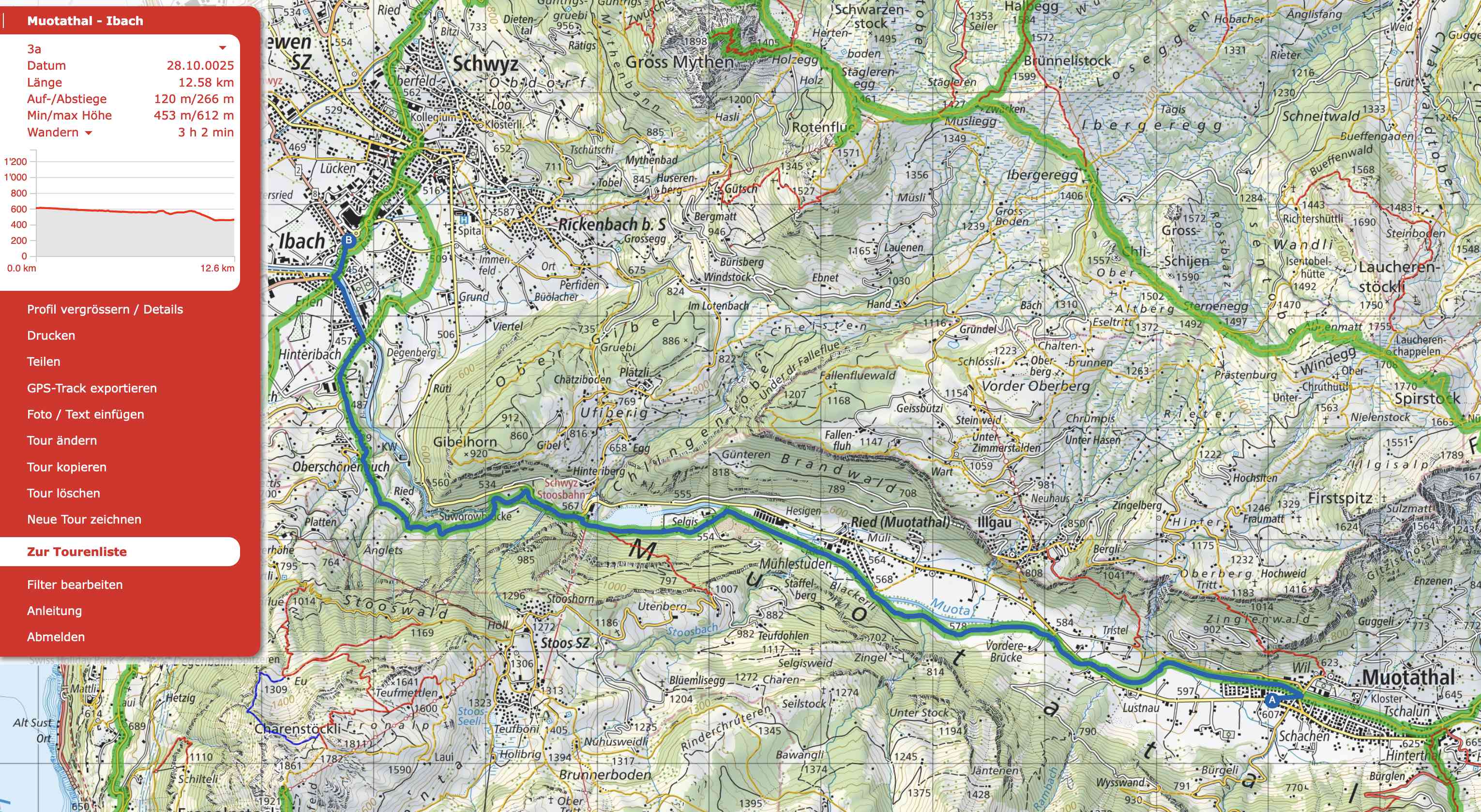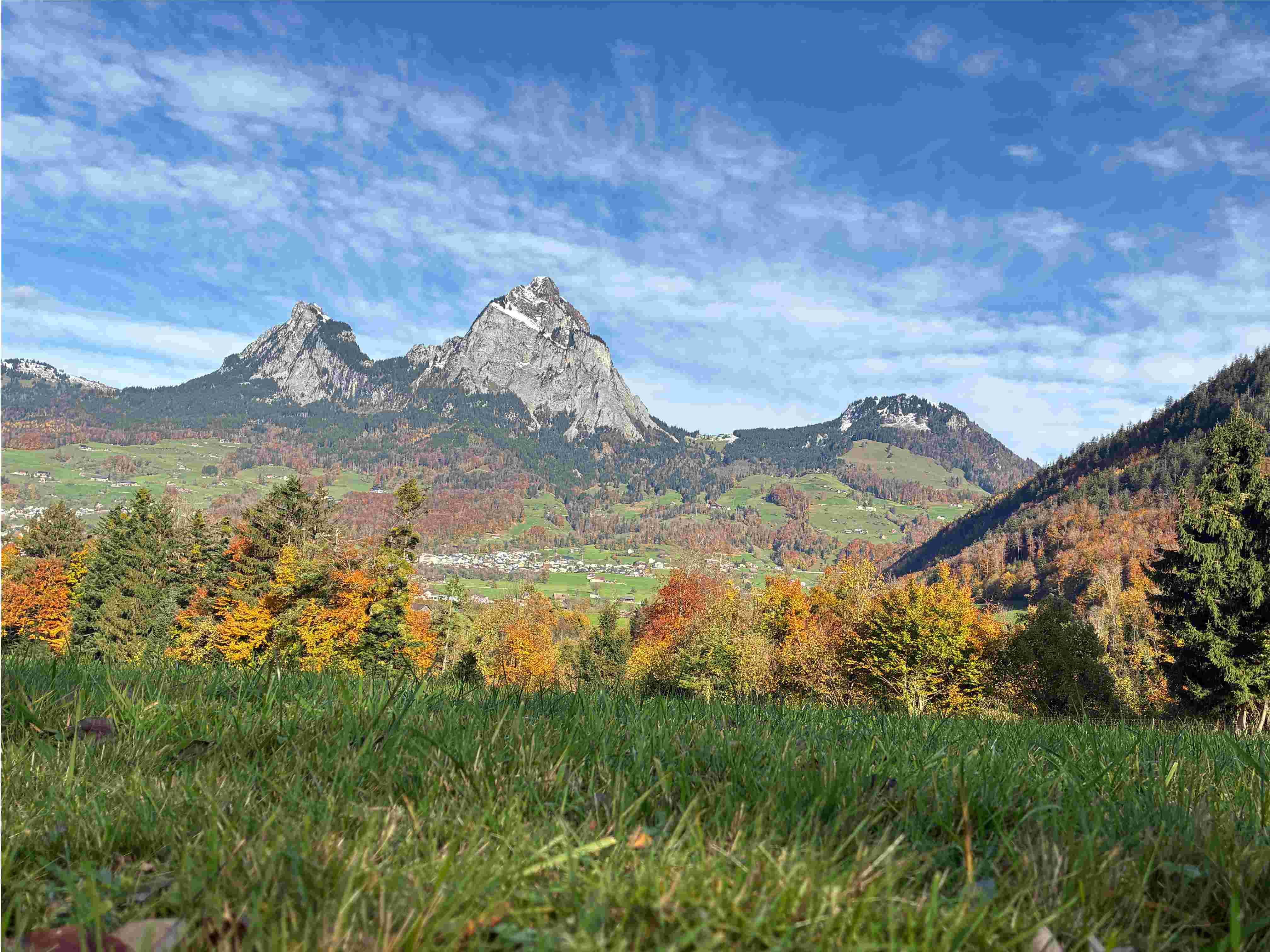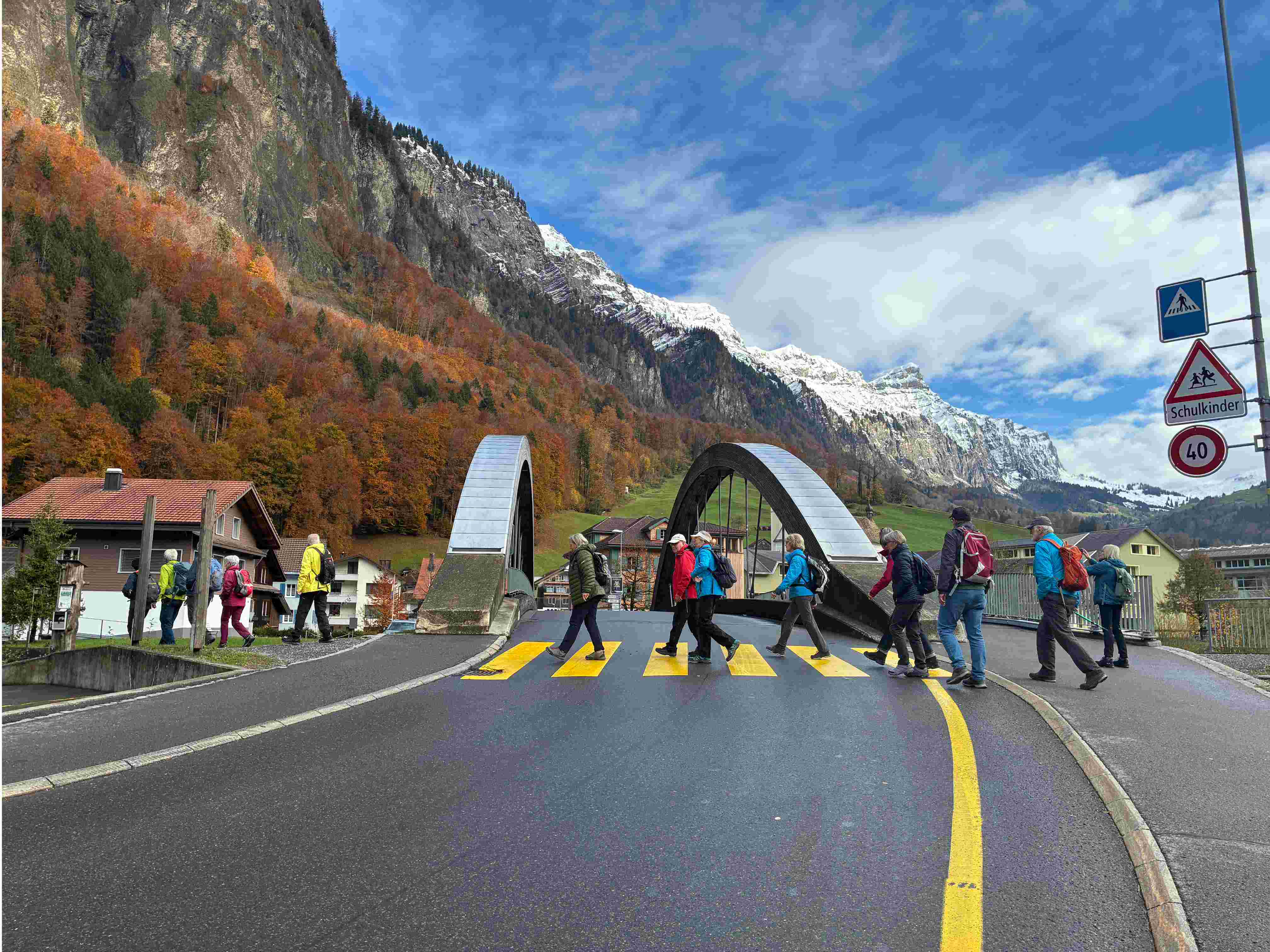 Gestärkt führte uns der Weg weiter über die Suwarow-Brücke und hinauf auf eine kleine, sonnenbeschienene Anhöhe mit bestem Rundblick auf den Schwyzer Talboden. In Ibach kehrten wir ein für eine kurze Erholung vor der Heimreise. Die wenigen Minuten zur Busstation wurden unvorhergesehen zu einem kleinen, baustellenbedingten Irrlauf. Wir verpassten den anvisierten Kurs zum Bahnhof, fanden aber eine alternative Haltestation, und die etwas verlängerte Wartezeit in der wärmenden Herbstsonne verbrachten wir sitzend - kurzum ein angenehmer Abschluss eines erlebnisreichen Wandertages.