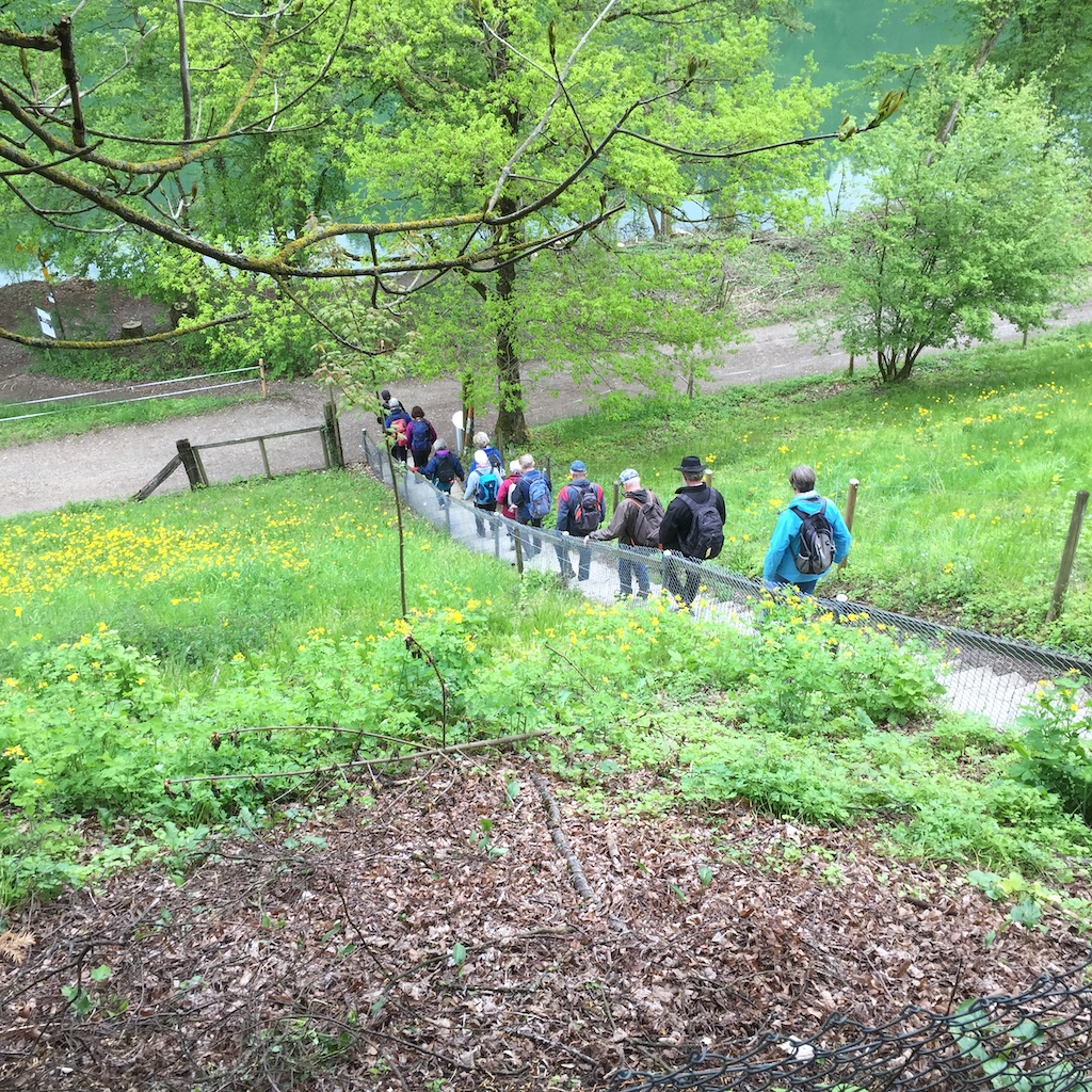 zu einer Frühlingswanderung aufzubrechen. Schon während der Anfahrt nach Rottenschwil sahen wir viele gelb blühende Rapsfelder und auf einigen Masten grosse Nester mit Störchen. Gleich zu Beginn der Naturschutzzone Flachsee Unterlunkhofen konnten wir das Ergebnis der Arbeit der Biber bewundern. Der Flachsee entstand im Rahmen des Neubaus des Kraftwerkes Bremgarten-Zufikon und der Gesamtmelioration der Reussebene im Herbst 1975 und wurde speziell als Wasservogelreservat gestaltet. Er ist ein Paradies für Vogelbeobachtungen. Wir blieben oft stehen mit Blick auf die verschiedenen Enten, Gänse, Blässhühner, Kormorane, Mittelmeermöven und Graureiher. Helena von Allmen wusste uns ihre ornithologischen Kenntnisse sehr gut zu vermitteln. Anschliessend kamen wir zum Benediktinerinnenkloster Hermetschwil. Der grosse Klostergarten bot schönen Platz für unsere Mittagspause. Durch den Zopfhau-Wald mit den in verschiedenem Grün leuchtenden Bäumen und dem vielfältigen Gezwitscher der Vögel gelangten wir nach Bremgarten. Für die Auswahl und die Organisation dieser schönen Wanderung danken wir dem Wanderleiter. Im Restaurant Bijou an der Reuss liessen wir sie gemütlich ausklingen.