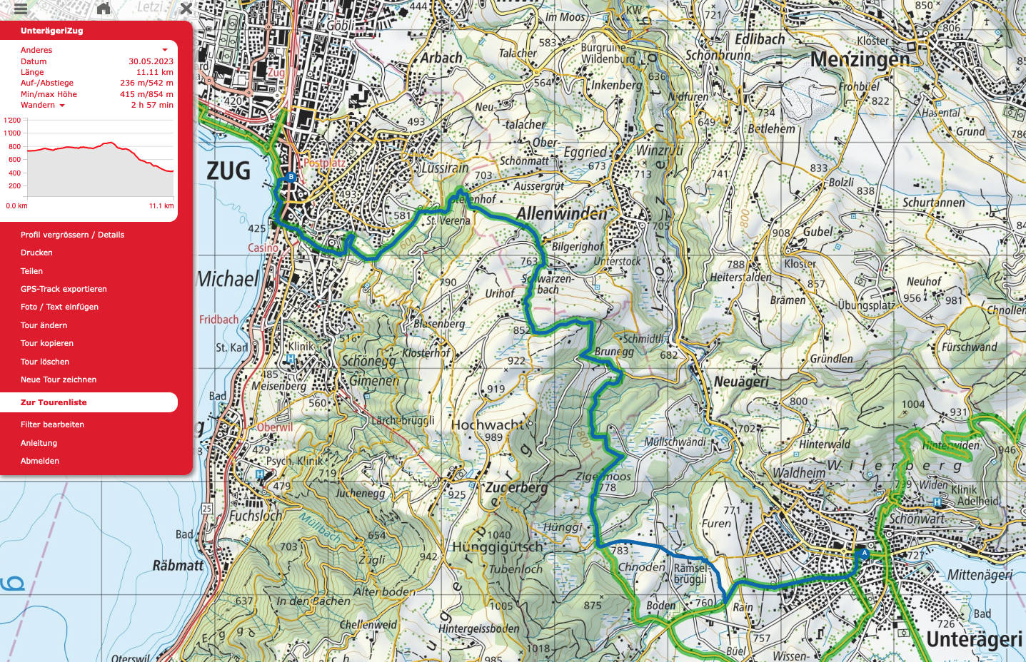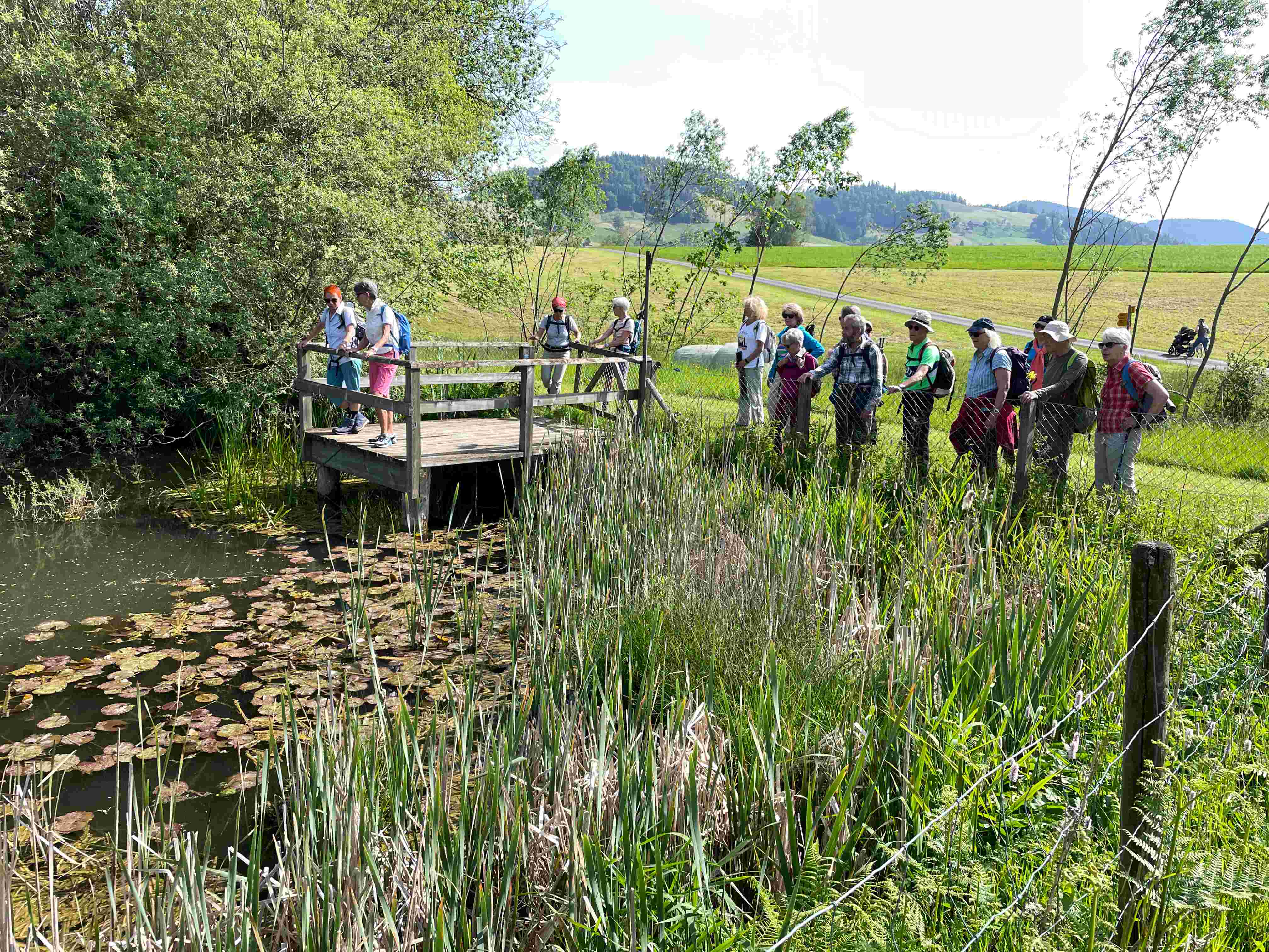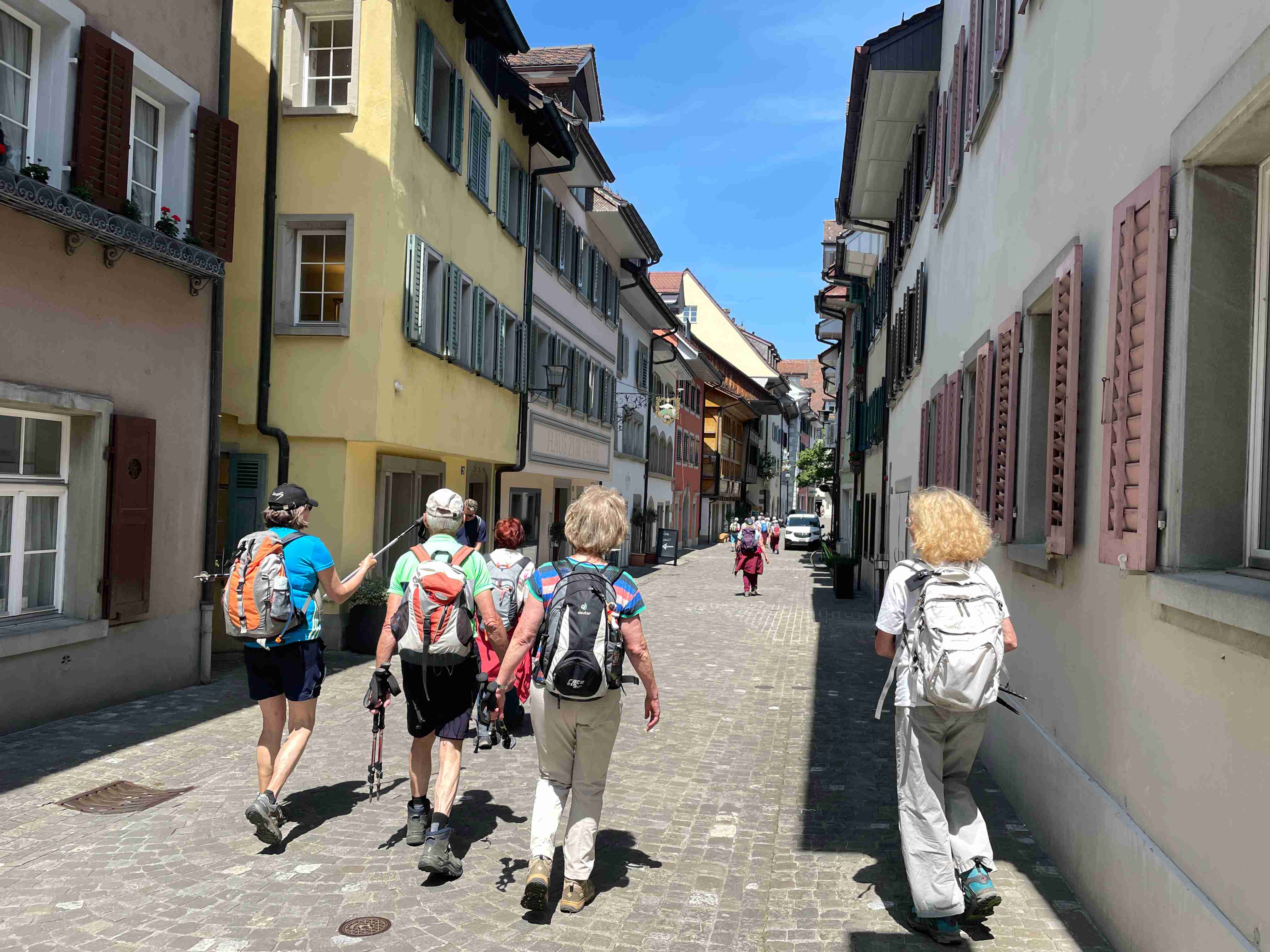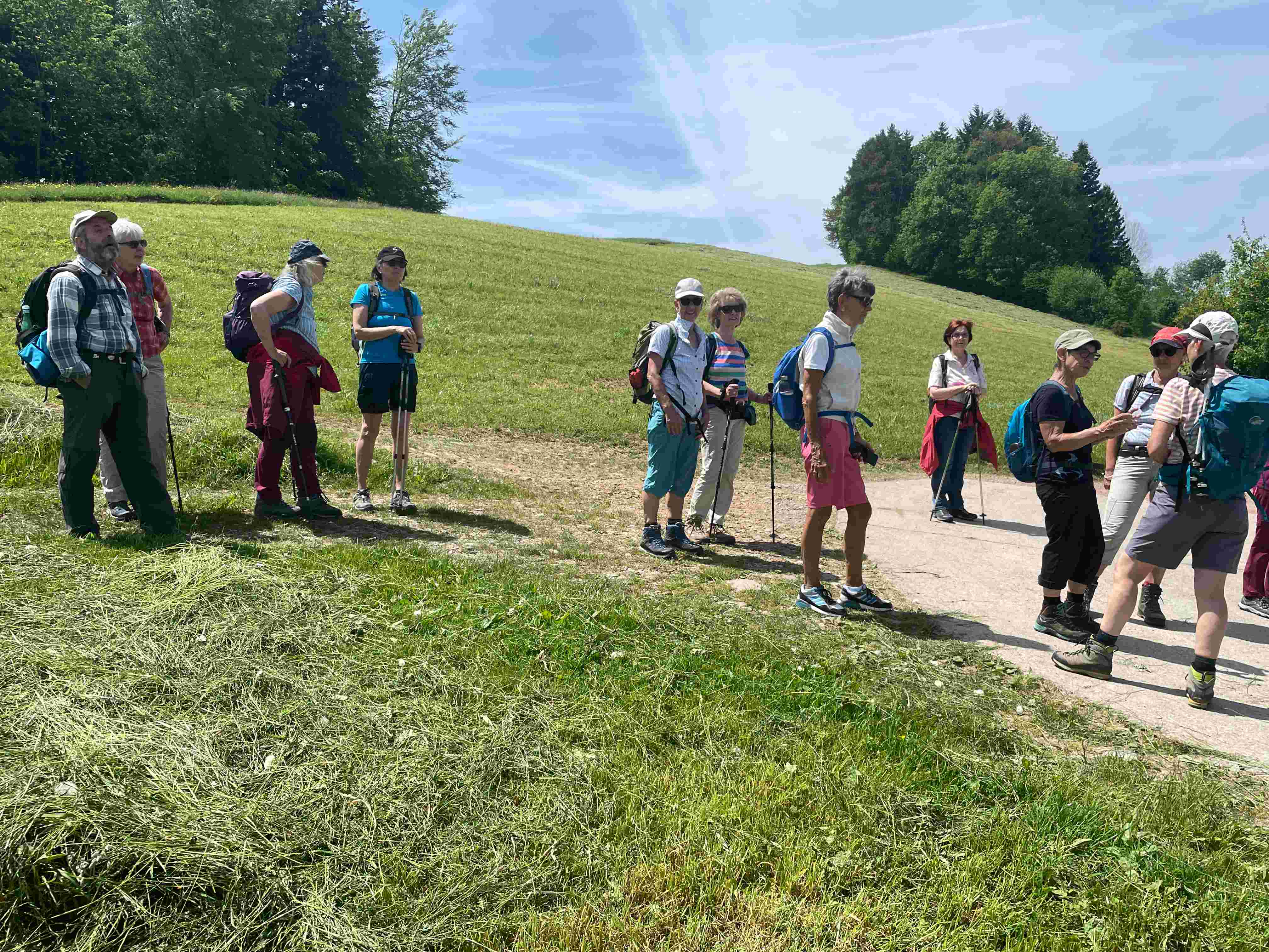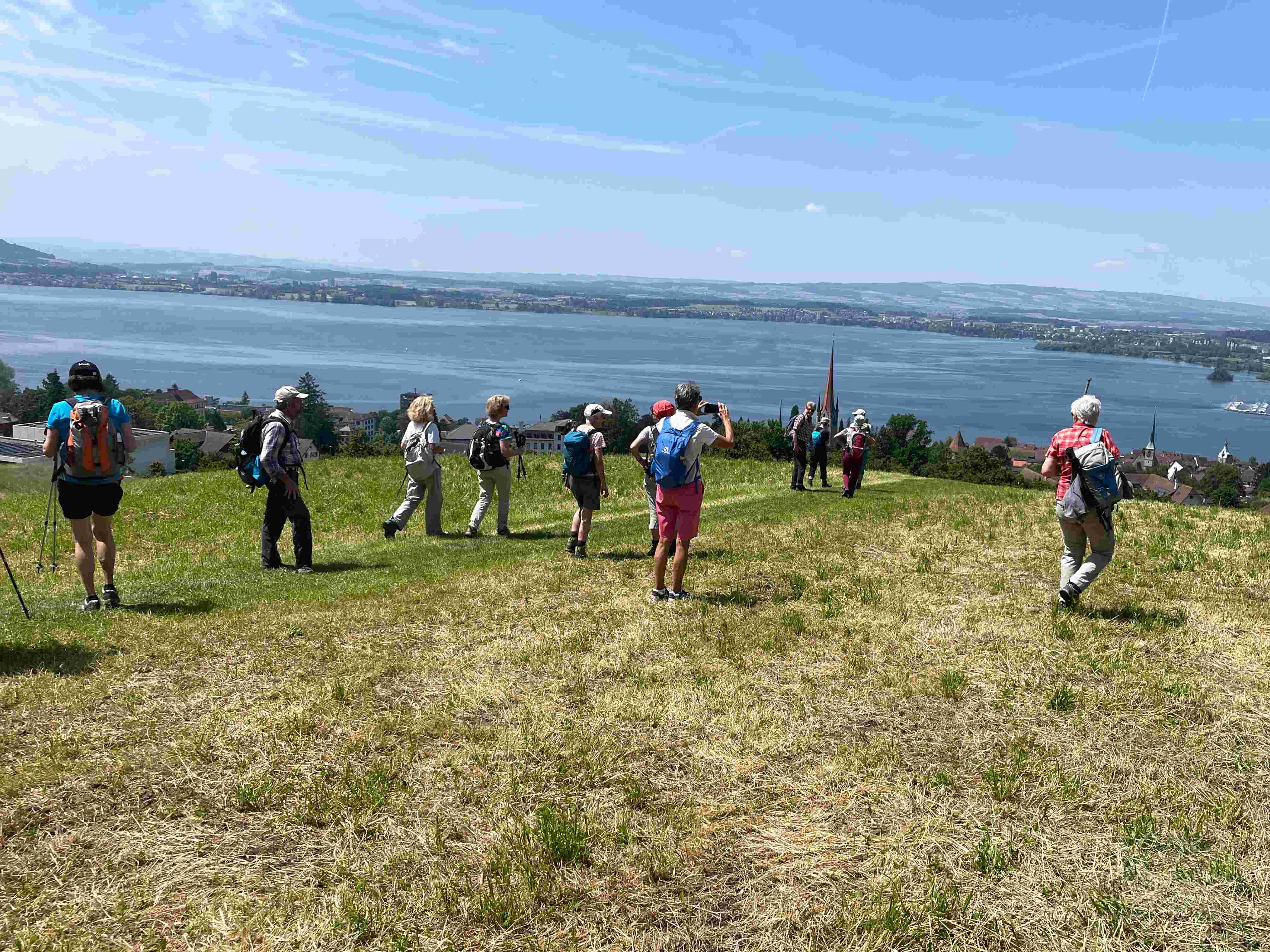 Die für den 30. Mai 2023 von Ruth Geisseler ausgesuchte Tour begann in Unterägeri. Nach einer kurzen Besichtigung der Pfarrkirche begaben wir uns auf den Alpenpanorama-Weg. Dieser führte zuerst durch das Dorf zur Kapelle St. Wendelin. Anschliessend zweigten wir ab, um ein kleines Moorgebiet mit Weihern und Rämselbach zu durchqueren. Nun ging es vorbei an der Tankfalle Sibrisboden, einer Panzersperre aus dem 2. Weltkrieg. Heute werden dort im Rahmen eines Vernetzungsprojektes ökologisch wertvolle Flächen für sowohl typische als auch seltene Tier- und Pflanzenarten erhalten und neu geschaffen. Wieder änderte sich die abwechslungsreiche Umgebung in dichteren Wald, bis wir uns zur Mittagspause auf einer abgemähten Wiese niederliessen. Leider hatte die nahegelegene Alpwirtschaft Brunegg geschlossen. Etwas oberhalb erreichten wir nun den höchsten Punkt unserer Wanderung. Abwärts gehend erschlossen sich uns die schönsten Panoramablicke in Richtung Menzingen und zur anderen Seite über den Zuger See. Nach einem steilen Abstieg durch das Chämistal kamen wir zur Kapelle St. Verena. Der Weitwanderweg endete für uns am Ufer des Zuger Sees zu einem angenehmen Schlusskaffee. Das Stück zum Bahnhof Zug war anschliessend nur noch ein Katzensprung. Die Wanderleiterin Ruth Geisseler hat uns durch ihre Wahl des Weges begeistert, und so danken wir ihr für den herrlichen Tag.