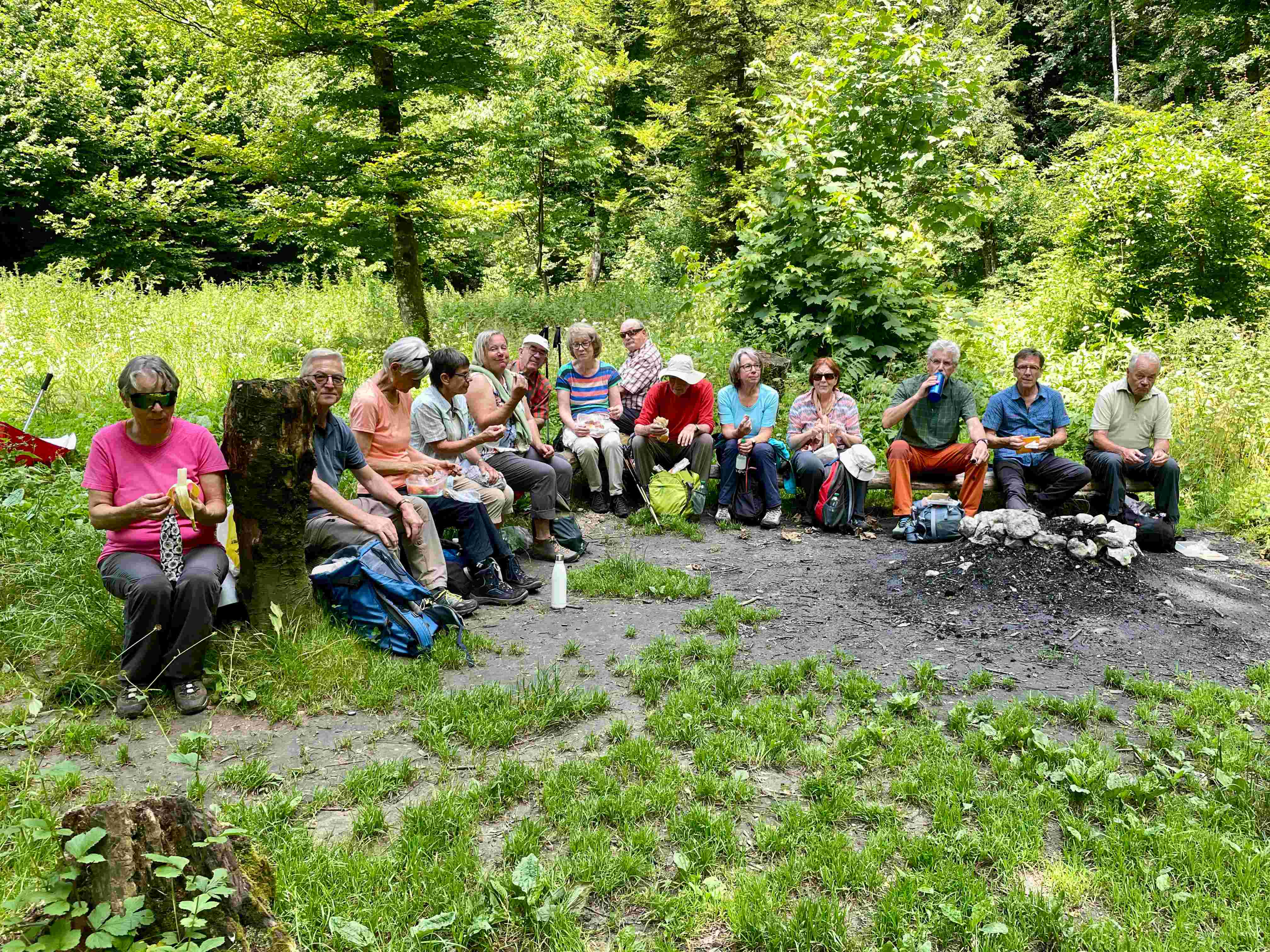 begannen wir am 25. Juni 2024 unter der Leitung von Franz Mazenauer unsere Wanderung an der Meltingerbrücke auf der Via Surprise entlang des Ibaches. In dem Tal mit seinen hohen Felswänden und seiner vielfältigen Pflanzenwelt fühlten wir uns in eine wildromantische und mystische Landschaft versetzt. Von allen Seiten kamen kleinere Bäche hinzu. In dieser Karstlandschaft haben sich viele Höhlen gebildet, deren prähistorische Fundstellen für Archäologen noch heute interessant sind. Mehrere Feuerstellen laden zu einer Pause ein. Am Chessiloch fliesst der Ibach in die Birs. Die hier zu sehende Wappenfelsanlage gilt als eines der bedeutendsten militärhistorischen Kulturdenkmäler der Schweiz. Der Weiterweg nach Grellingen erfolgte wegen Bahnbauarbeiten auf einer Umleitung neben den Gleisen.